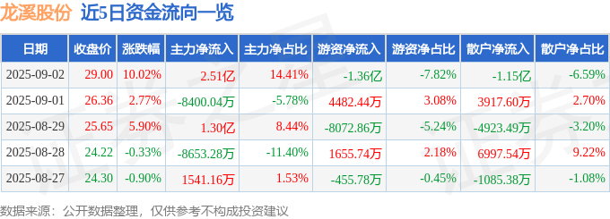 证券之星消息,龙溪股份9月2日涨停收盘,收盘价29.0元。该股于13点5分涨停盛康优配优配,未打开涨停,截止收盘封单资金为1.88亿元,占其流通市值1.62%。